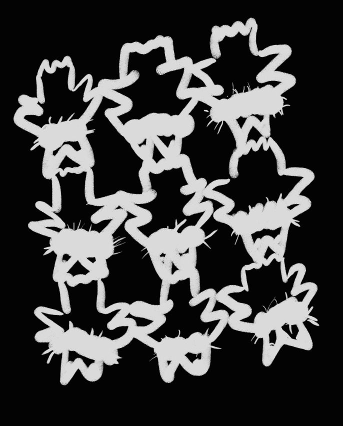 flanks the silhouette form of